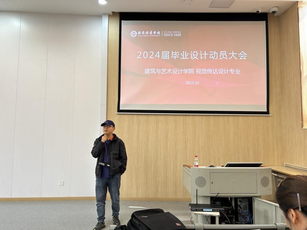 大会最后,张鹏老师指出:同学们要认真对待毕业设计,积极与自己的毕设导师沟通,指导老师也会秉着认真负责的态度完成2024届毕业设计指导工作。本次视觉传达设计专业2024届毕业设计开题动员大会为同学们提供了创作方向,完成了小组与毕设导师的分配工作,2024届毕业设计开题动员大会圆满结束,预祝同学们毕业设计顺利圆满!