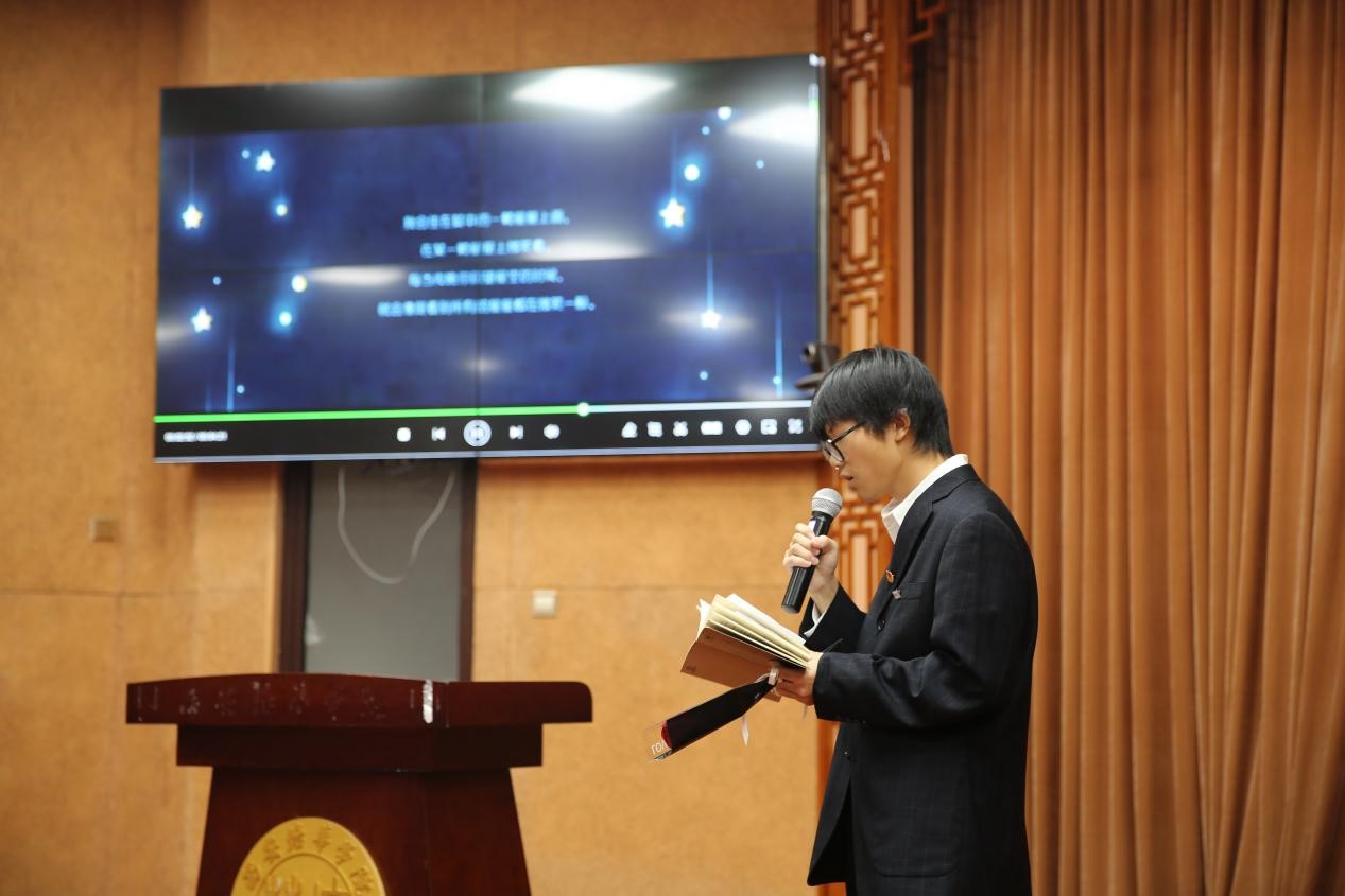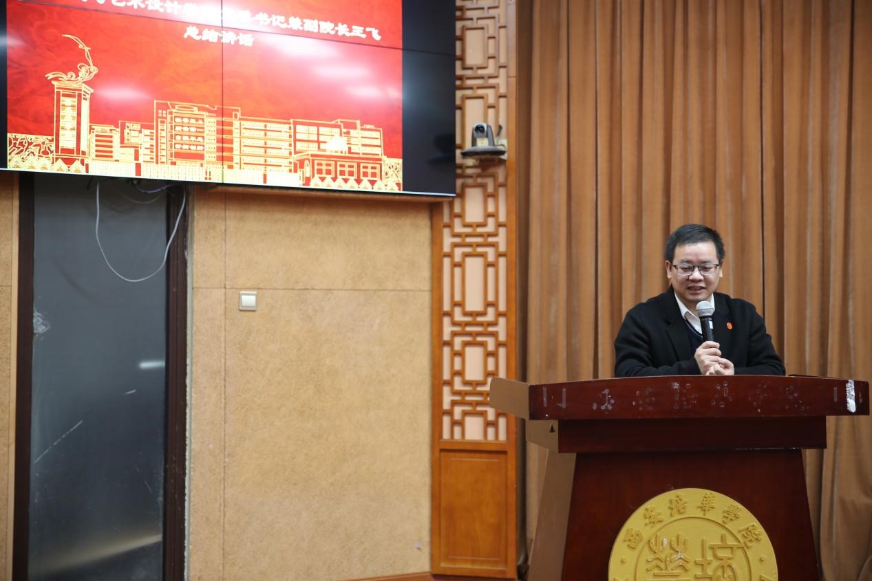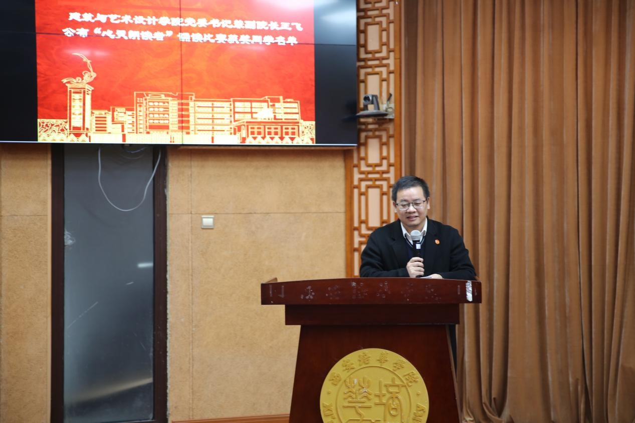 会议最后,王飞院长对本次心理美文诵读大赛做了点评,他首先肯定了各位选手的出色表现,并且结合自己的经历,耐心地分析了选手们的优点与不足。他指出,本次活动的开展,丰富了学生们的校园生活,为学生们提高表达能力与展示自我提供了一个机会,也是学校心理健康教育多样化推进的有效举措。其次,也表达了对艺小芽工作站学生干部的殷切期望,希望同学们以身作则,向榜样看齐,为学院发展奉献自己的一份力量。