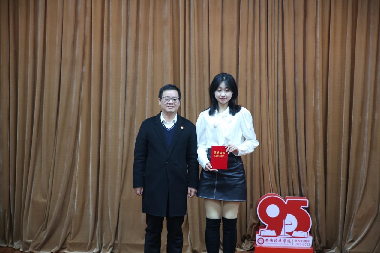 黄鑫、关小芳老师为二等、三等及优秀奖获得者颁发证书