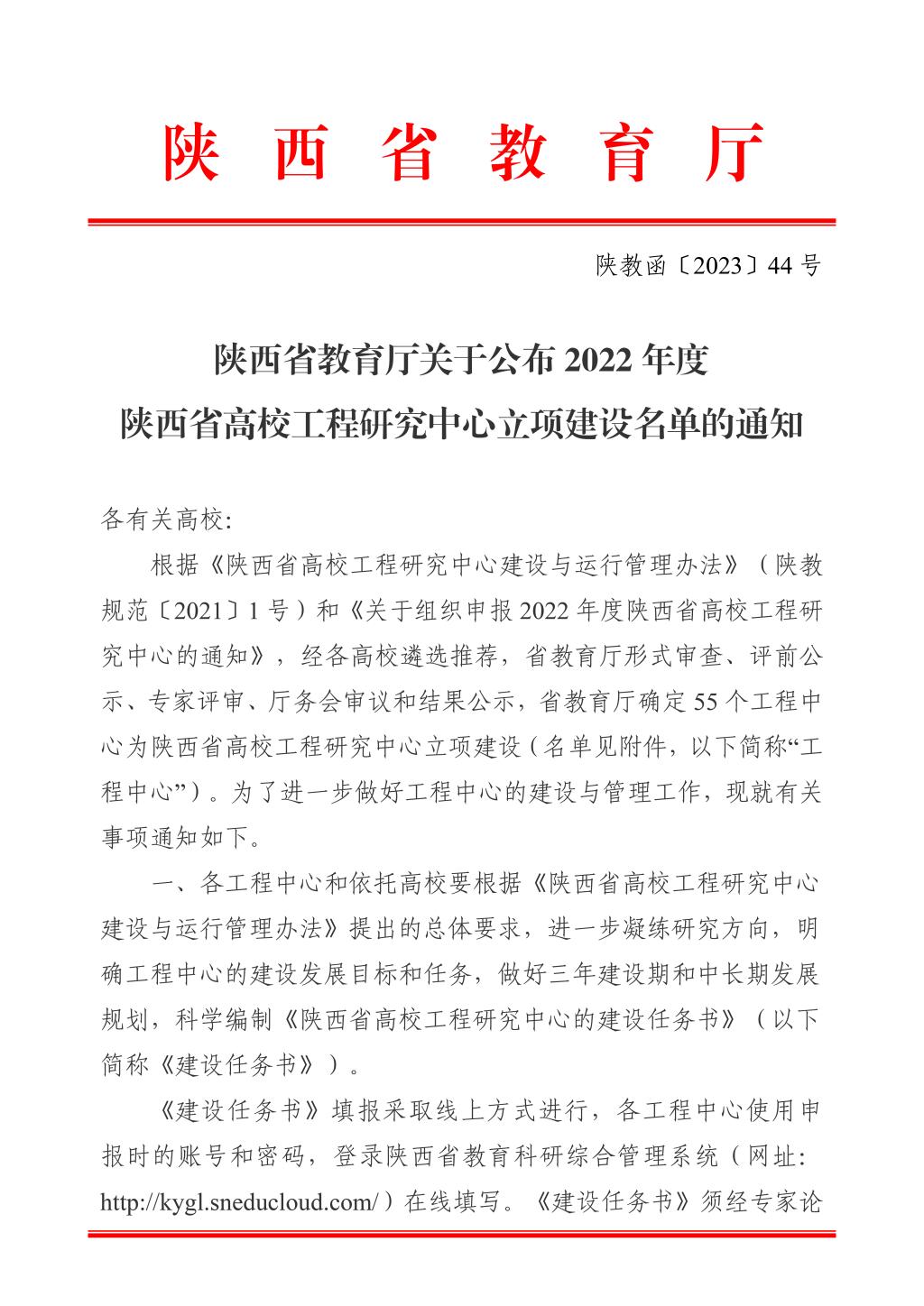 近日,省教育厅公布了2022年度陕西省高校工程研究中心立项建设名单。由我校医学院刘毅教授牵头申报的生物安全防御装备陕西省高校工程研究中心成功获批,实现了我校省级科研平台零突破。