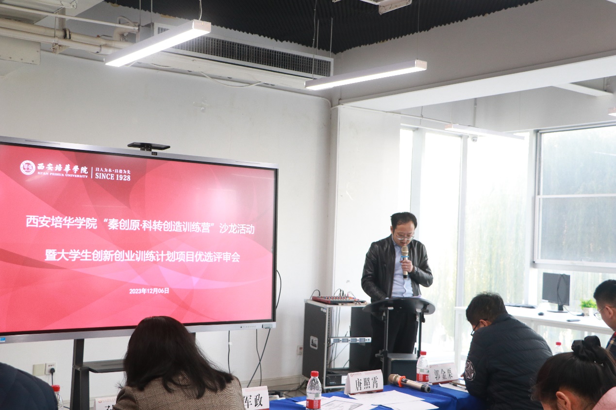 2023年12月6日下午,我校科研管理中心、教务管理中心、合作与发展办公室共同举办的“秦创原·科转创造训练营”第一期沙龙活动暨大学生创新创业训练计划项目优选评审会在创客中心二层207多功能厅召开,活动由我校创客中心负责人王旭东主持。