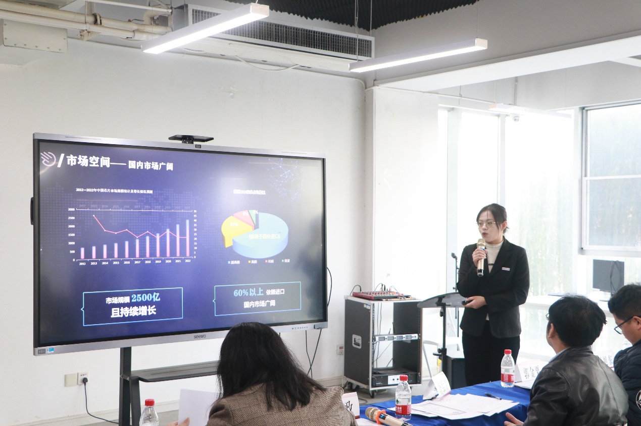 接着由创客中心负责人王旭东宣布路演答辩规则与评审标准,按照本期沙龙活动安排,参加路演评审的信息技术组《基于OpenCV的双目摄像头近视检测与预防装置设计》等5个项目以PPT及实物展示相结合的形式,从项目背景、市场情况、产品研发等方面进行陈述,现场评委们从多个维度对路演项目进行了详细提问和深度点评。随后,评委专家展开宣讲,为师生详细解读我省最新科技成果转移转化政策。