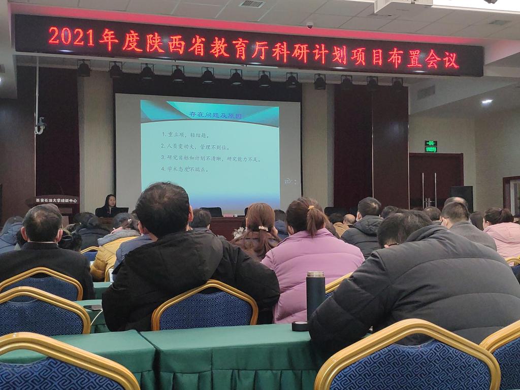 2021年度陕西省教育厅科研计划项目布置会议于12月16日在西安石油大学明德楼报告厅召开,省教育厅科技处朱晓冬处长、秦天红副处长出席会议,全省各高校纵向科研项目管理人员参加会议。