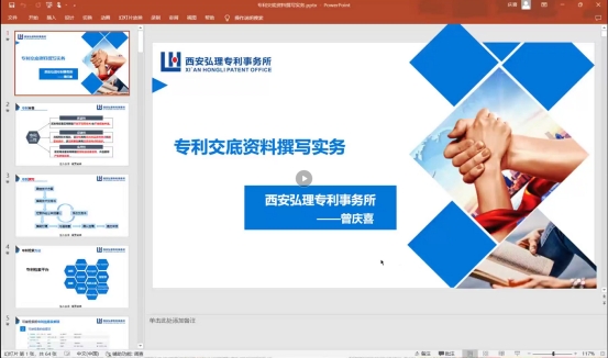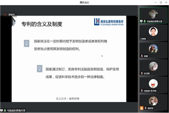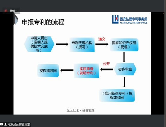 11月18日和11月23日分别邀请西安弘理专利事务所总经理曾庆喜和代理部部长毛航超开展了专利基础知识审查流程及专利交底资料撰写实务的系列讲座。我校医学院、智信学院和建艺学院的一百余名教师参加了讲座。