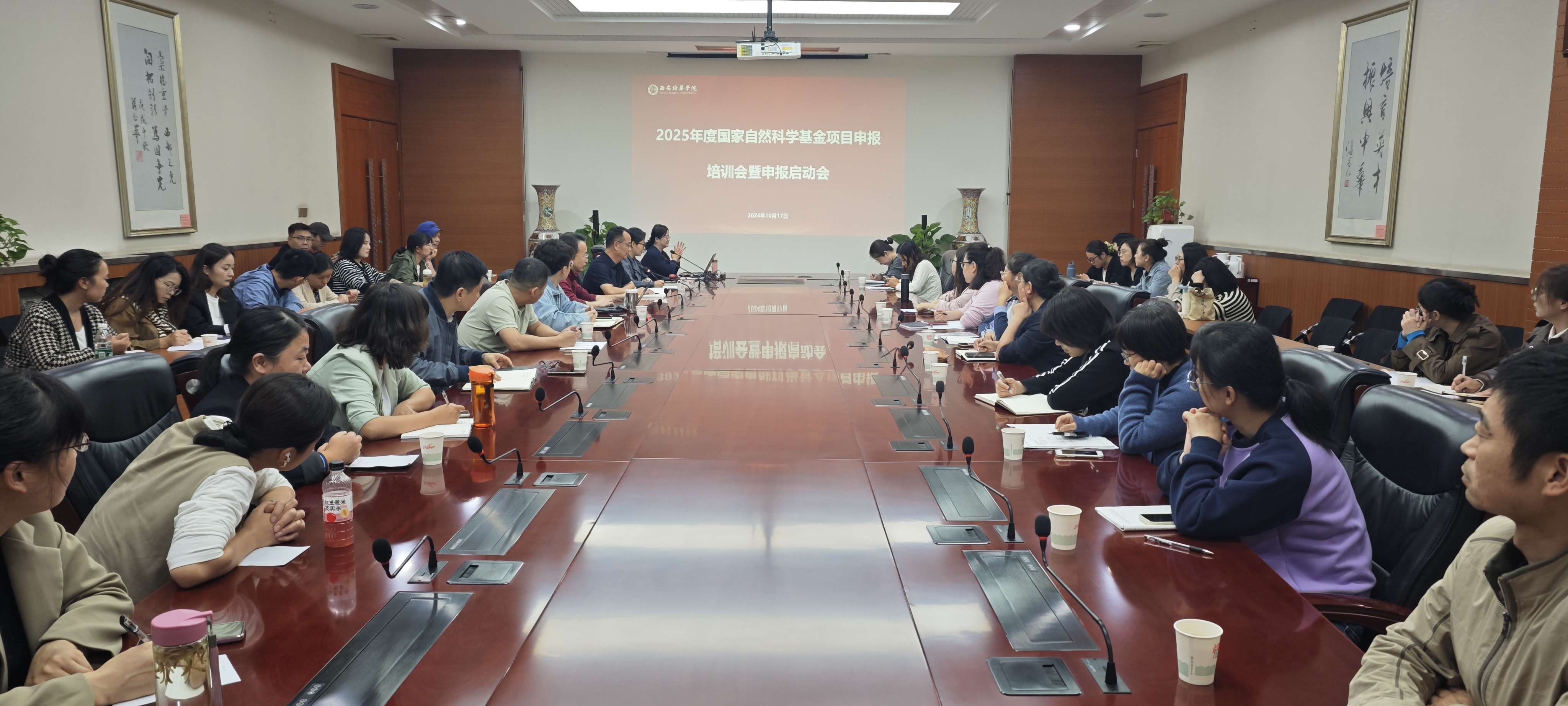 为进一步做好2025年度国家自然科学基金项目申报工作,提高学校国家自然基金项目的申报质量,2024年10月17日下午,学校在明德楼第一会议室召开了2025年度国家自然科学基金项目申报培训会暨申报启动会。科研管理中心主要负责领导出席会议并做动员讲话。相关二级学院领导及相关学科专业教师参加了会议,动员会由科研管理中心副主任刘清颖主持。