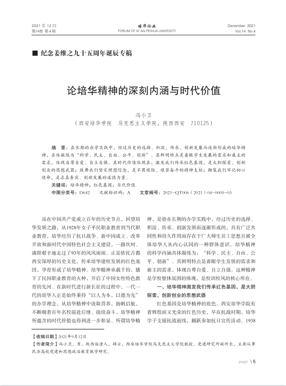 从2006年创刊至今已走过了18个年头,先后刊登的师生各类论文近千篇,在展示学校科研实力的同时,也锻炼了一大批科研先进人物,借助这一平台,很多老师、学生完成了对论文撰写的升华,培育了对科研工作的浓厚兴趣。从2015年始,《论丛》刊载的基金项目阶段性研究成果越来越多,在学校的“金课”打造、职业教育、女性平等理念贯彻以及新时代的课程思政方面都发挥了积极的作用,被校领导誉为“培华教育教学改革的内参”。