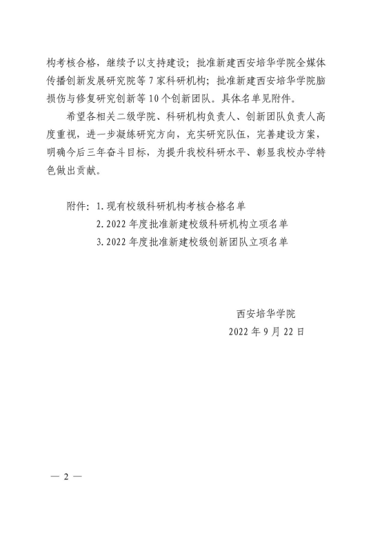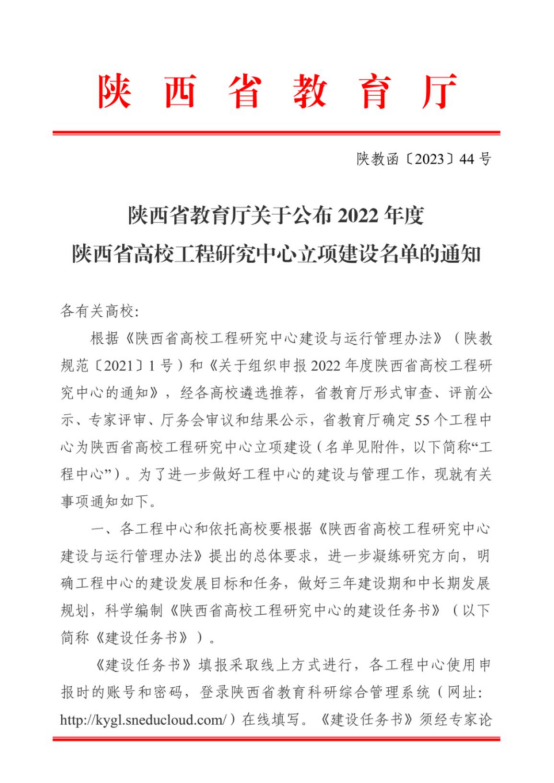 2022年,我校积极践行“有组织科研”,科研平台团队建设工作取得重大进展。目前,我校已建成校级科研机构13个、校级创新团队10个。由医学院刘毅老师牵头申报的生物安全防御装备陕西省高校工程研究中心成功获批,实现我校省级科研平台零突破。