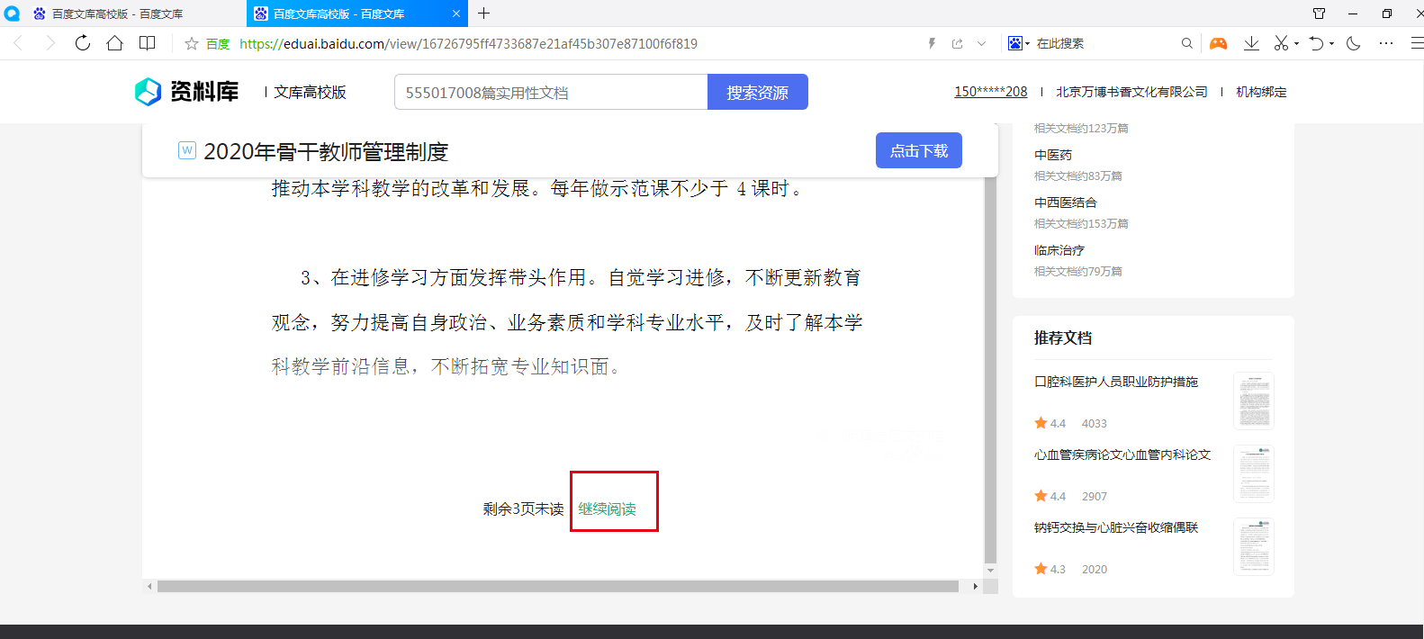 百度文库高校版是应用型数据库,有别于传统文献资料库文档的格式,以Word、PPT、Excel等格式展现,能够给予日常学习工作直接的一手资料来源。读者在该平台除了专业资料、学术论文查询之外,还可进行技能培训、外语考试、资格考试等的资料的查阅及下载。