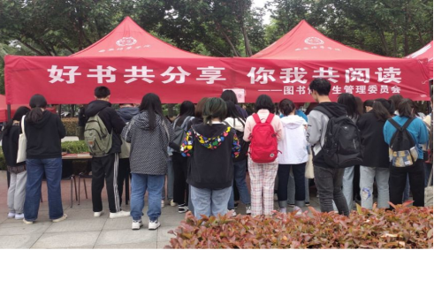 2021年4月21至22日,图书馆学生管理委员会于综合楼西广场举办了“好书共分享,你我共阅读”主题活动。