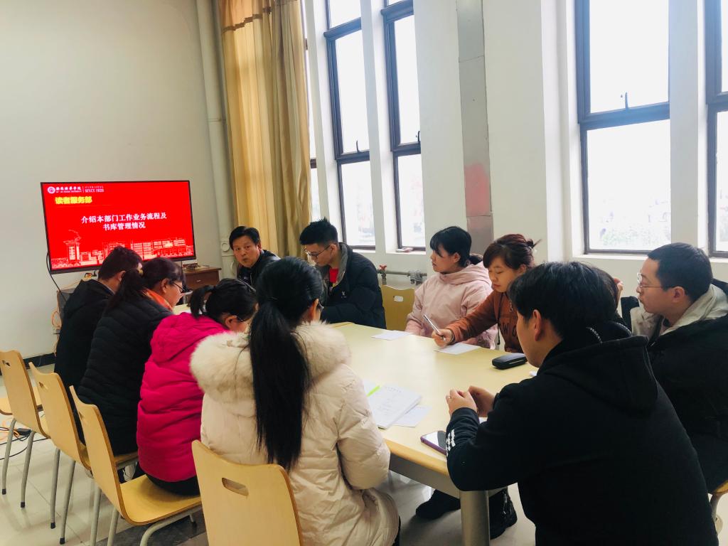 为了使新进图书馆员工及实习生较快熟悉图书馆工作,并能尽快完成角色转换,胜任岗位工作需要,11月27日下午,图书馆办公室、各部门负责人在图书馆一楼图馆会办公室举办新入职员工岗前培训会。