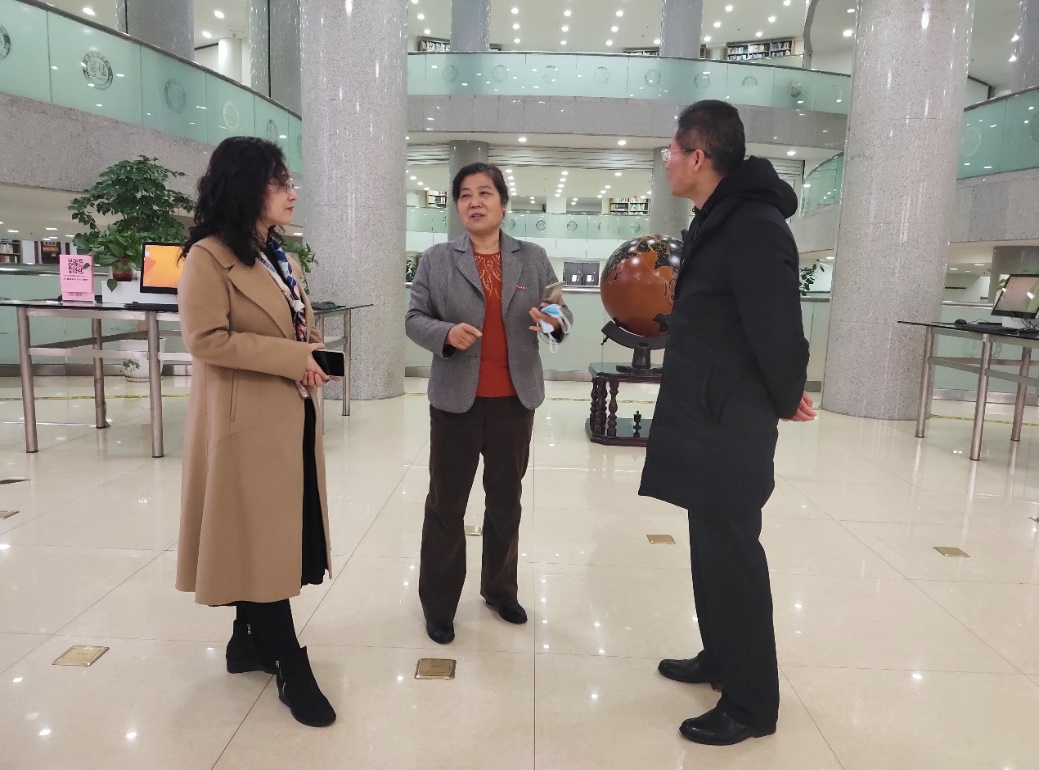 2021年12月10日,宝鸡职业技术学院调研组一行20人来我校图书馆参观考察,我校图书馆吴晓燕馆长热情接待调研组成员,调研组李兵科、郭永丽两位副馆长实地参观了多个阅览室,并进行业务交流。