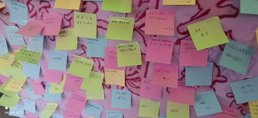 活动通过书写便利贴的方式来展开,纸短情长,纸上每个认真写下的文字,都是爱的表达。现场工作人员详细为路过同学讲解此次活动举办的流程和意义,同学们反响热烈,积极参与,纷纷在便利贴上写下了各自对母亲的祝福。