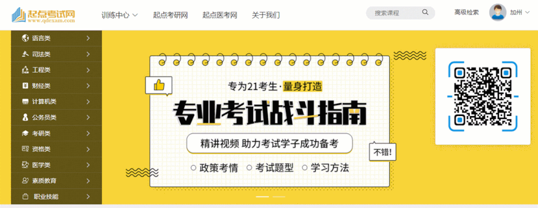 《起点考试网》是学测评一体化在线学习平台,汇集了视频课程、试题、试卷、资讯等学习资源,具有在线听课、在线练习,模拟考试、成绩评测等功能,收录范围涵盖英语、计算机、公务员、司法、财经、考研、工程、资格、医学、职业技能、素质教育等11大类500多科目。