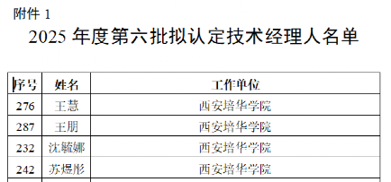 近日,陕西省科学技术厅发布《2025年度陕西省技术经理人第六批拟认定人员及拟选树优秀和金牌技术经理人的公示》,西安培华学院马克思主义学院王慧、王朋、沈毓娜、苏煜彤四位教师成功入选第六批省级技术经理人名单,标志着学校在科技成果转化人才培养与产学研融合领域再获突破。此次认定严格依据《陕西省技术经理人认定工作指引(试行)》及《陕西省技术经理人队伍建设行动方案(2025-2027年)》开展,需满足学历、从业时长、培训经历及业绩条件等多重要求。四位教师凭借扎实的专业能力,从全省申报者中脱颖而出,与其他423人共同跻身本次拟认定名单。四位教师的入选,既是对个人专业素养的肯定,也彰显了学校在“思政+科技成果转化”交叉领域人才培养的特色成效,为学校深化校企合作、助力秦创原创新驱动平台建设奠定坚实基础。