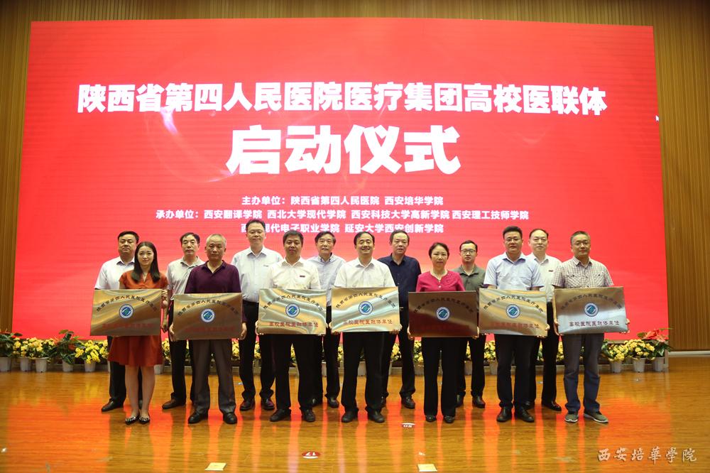 6月15日上午,由陕西省第四人民医院、西安培华学院主办,长安区6所高校承办的陕西省第四人民医院“高校医联体”在培华学院启动。陕西省卫生和计划生育委员会(以下简称“陕西省卫计委”)副主任陈昭、陕西省第四人民医院院长高碧奇、西安培华学院理事长姜波等领导出席大会,西安培华学院师生代表500余人见证高校医联体的正式成立。