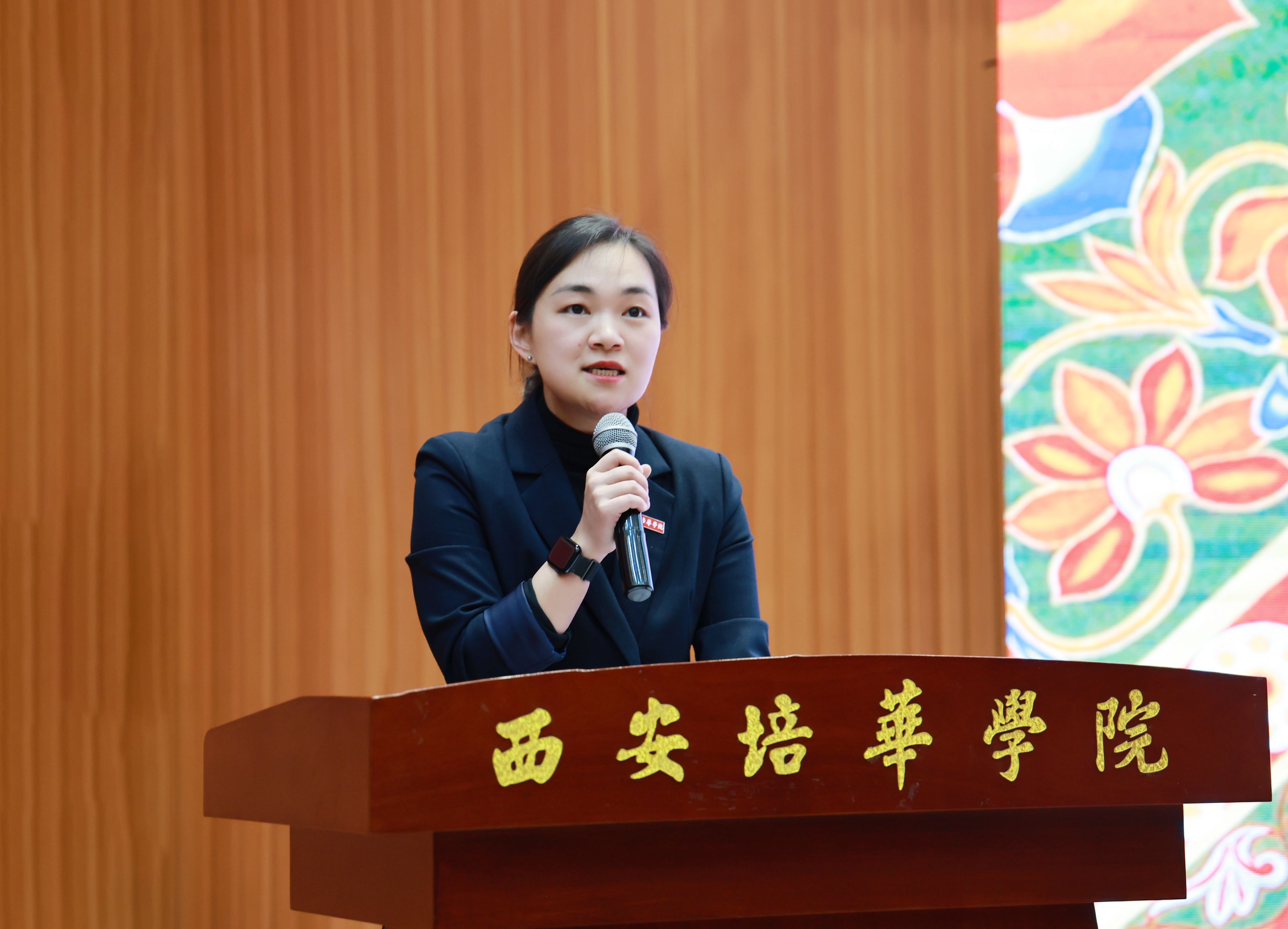 校团委书记董莹老师宣读《西安培华学院关于表彰2025年寒假“五育并举”返家乡系列社会实践活动优秀组织单位、示范(标兵)团队、优秀指导教师、先进个人的通报》。
