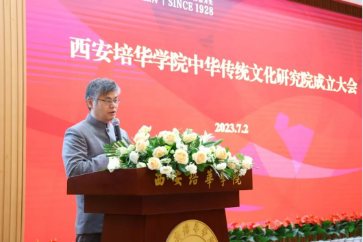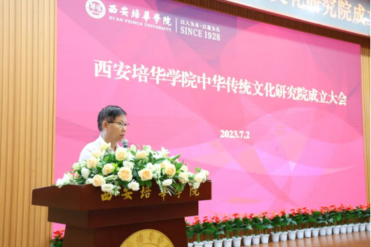 校长助理张运良宣读《西安培华学院关于成立中华传统文化研究院的通知》