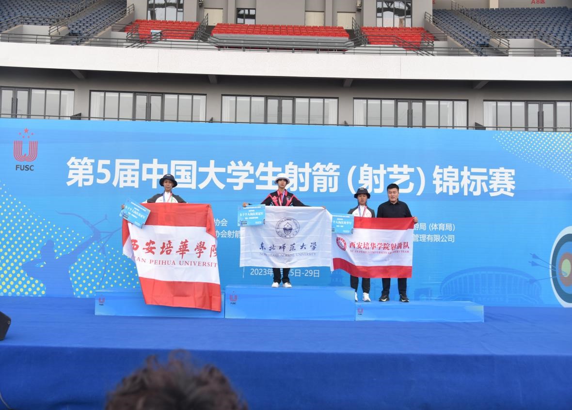 5月26—28日,由中国大学生体育协会主办,中国大学生体育协会射箭(射艺)分会执行,梅河口市文化广播电视和旅游局承办,第五届中国大学生射箭(射艺)锦标赛在梅河口市体育中心举行,共有来自北京大学、上海交通大学、浙江大学等全国52所高校460余名运动员、领队、教练员参赛。比赛历时三天,设传统弓个人团体、反曲弓个人团体等12个竞赛项目。西安培华学院代表队共派出6名运动员参加丙组反曲弓30米个人、混合团体和团体赛的比赛,并最终取得三银二铜的好成绩。代表队由体育学院院长王志强担任领队,孙茉晗、柴智恒两位老师担任教练。