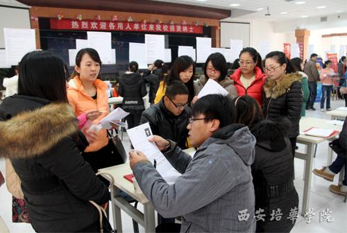 12月20日上午,我校2013年第四场大型校园招聘会在大学生活动中心成功举办。以中国移动通信集团陕西有限公司、山西西建集团有限公司、摩比科技(西安)有限公司、白象食品集团、俏江南等用人单位为代表的128家大中型企事业单位参会,招聘单位分别来自北京、上海、浙江、湖南、江苏、广东、福建、陕西等地。来自省内外高校的2000余名毕业生参加了本次招聘会。