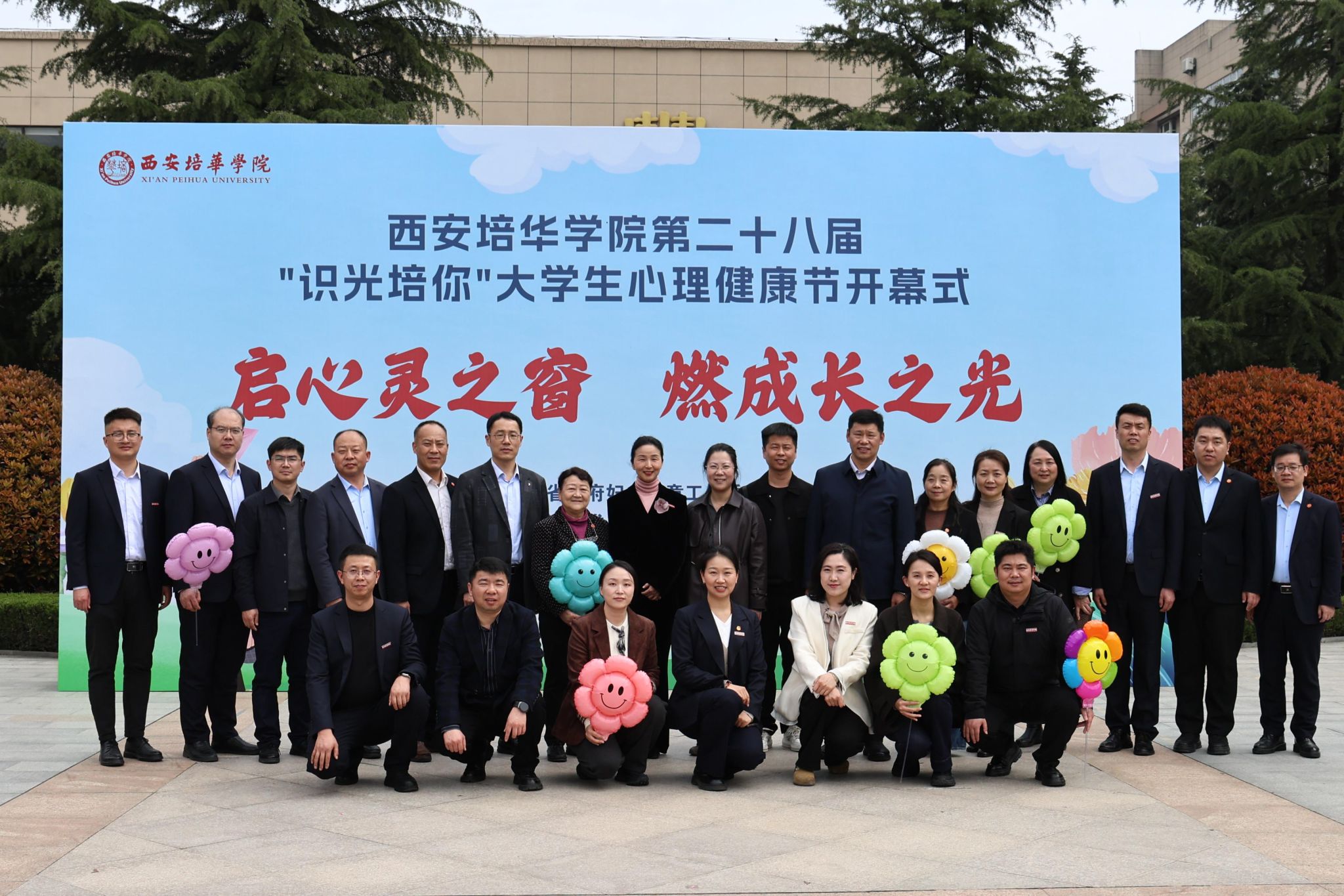 为深入贯彻落实教育部“健康第一”的教育理念,进一步落细落实学校心理育人工作,培育大学生养成自尊自信、理性平和、阳光向上的积极心态,3月25日中午,西安培华学院在丰园西广场开展第二十八届“识光培你”大学生心理健康节开幕式。校党委副书记、副校长姚文静,党委副书记蔡亮及各职能部门主要负责人,各二级学院行政副院长、党委副书记,辅导员和学生代表共同参与了本次开幕式。活动现场特别邀请到了西安市临潼中学党委委员邢鑫、政教处副主任雒昭以及相关教师莅临指导。