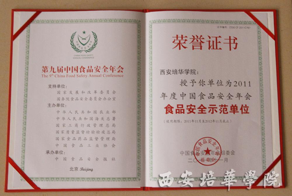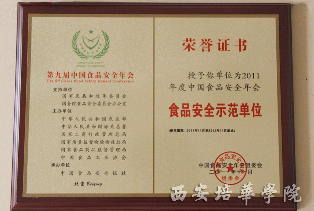 日前,由中华人民共和国科技部、农业部、海关总署、国家工商总局、国家质检总局、国家食品药品监管局、北京市食品安全委员会和中国食品工业协会共同主办,国家发改委和国务院食品安全委员会办公室共同支持,中国食品安全报社独家承办的第九届中国食品安全年会在北京隆重举行,本届年会以“城乡联动普新法,上下合力筑安营”为主题。我校在本届年会上再次被专家委员会评为“全国食品安全示范单位”称号。