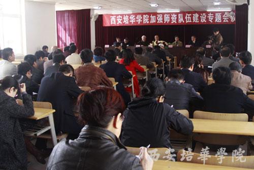 10月28日,我校加强师资队伍建设专题会议在长安校区隆重召开。院长陈明华,党委书记王斗虎,副院长杨定君、段茂贤、王根性、刘应南、王栓才出席会议,各院(部)、处(室)科级以上干部出席了大会。大会由杨定君副院长主持,陈明华院长作重要讲话。