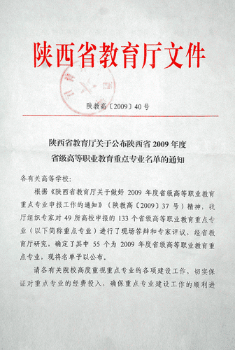 近日,省教育厅下发了《关于公布陕西省2009年度省级高等职业教育重点专业名单的通知》(陕教高[2009]40号文件),我校新闻采编与制作专科专业获批省级高等职业教育重点专业。
