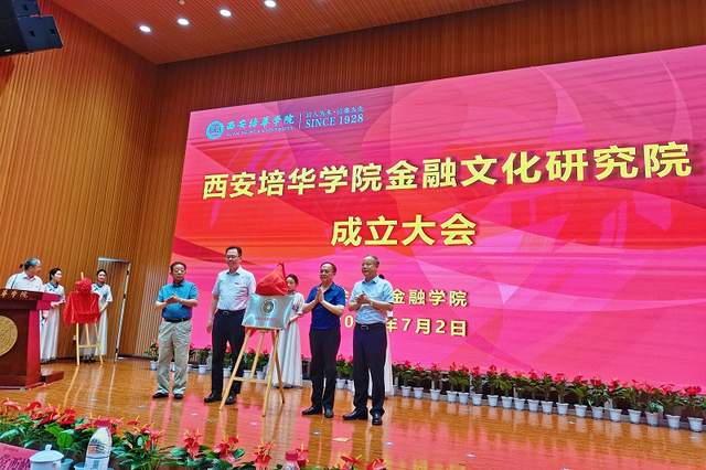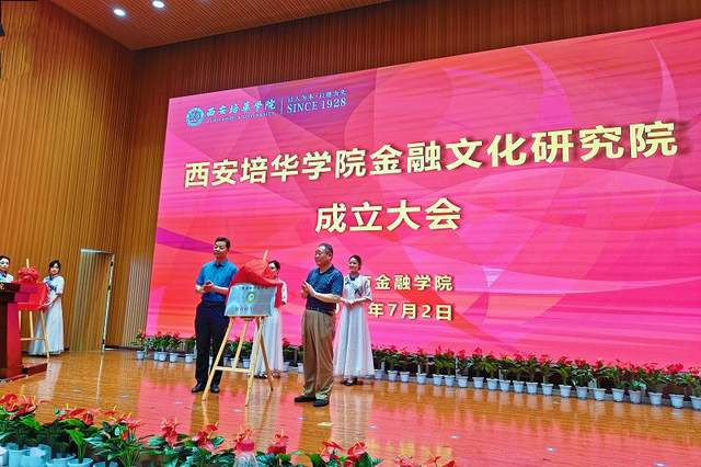 7月2日,由西安地方金融协会、西安培华学院、《中国金融文化》杂志社、中国金融作家协会陕西创作基地共同发起筹建的“西安培华学院金融文化研究院”,在具有九十多年历史文化积淀的西安培华学院正式落户,来自多所高校的专家学者和资深金融人士约400余人出席了当天的揭牌仪式。