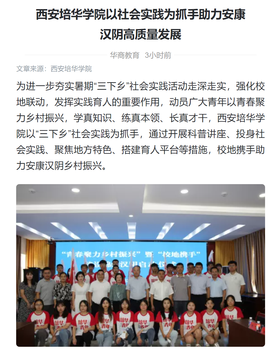 华商头条:西安培华学院以社会实践为抓手助力安康汉阴高质量发展