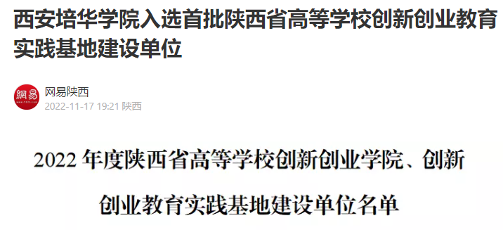 近日,陕西省教育厅办公室发布《关于公布陕西省高等学校创新创业学院、创新创业教育实践基地建设名单及考核办法的通知》陕教高办〔2022〕36 号,西安培华学院创客中心通过自主申报,历经材料审查、专家评审及公示阶段,成功入选省级创新创业教育实践基地建设单位名单,取得创新创业平台建设成效的重要突破。