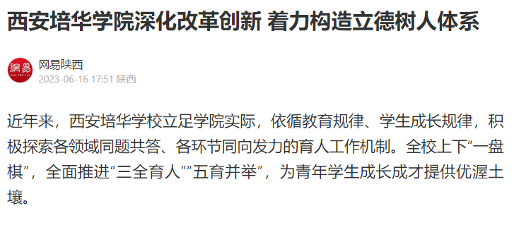 网易新闻:西安培华学院深化改革创新 着力构造立德树人体系