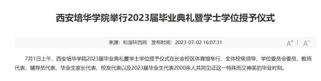 和谐陕西网:西安培华学院举行2023届毕业典礼暨学士学位授予仪式