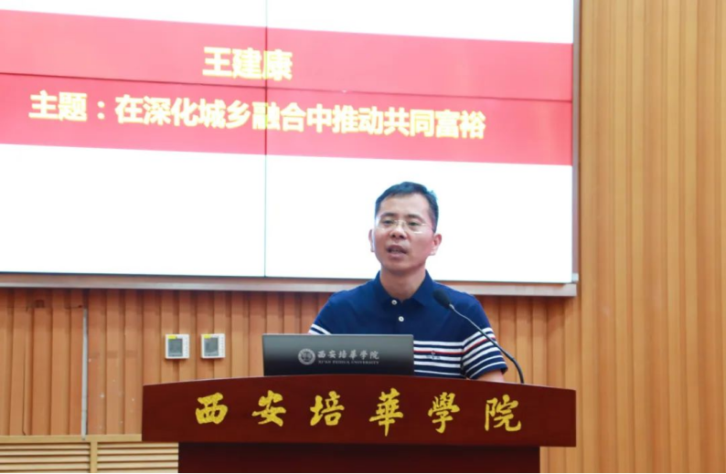 陕西省社会科学院党组成员、副院长、研究员,陕西省乡村建设研究会学术委员会副主任王建康作题为《在深化城乡融合中推动共同富裕》的报告