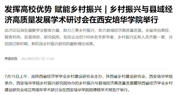界面新闻:发挥高校优势 赋能乡村振兴 | 乡村振兴与县域经济高质量发展学术研讨会在西安培华学院举行