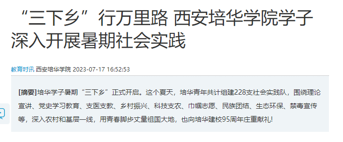 华商网:“三下乡”行万里路 西安培华学院学子深入开展暑期社会实践