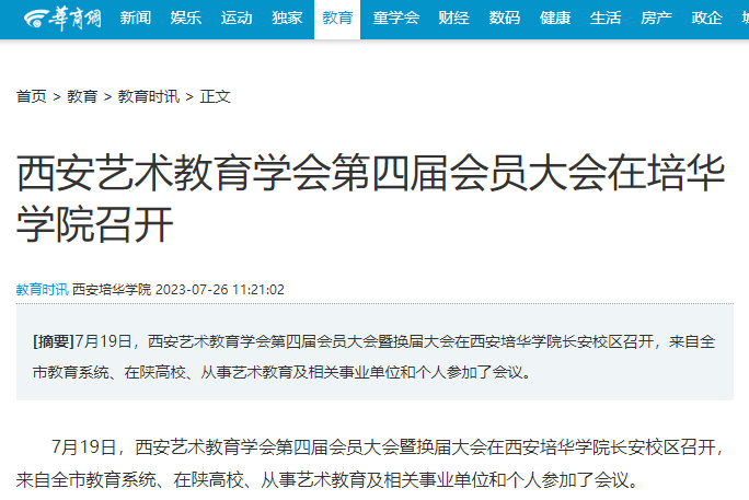 华商网:西安艺术教育学会第四届会员大会在培华学院召开