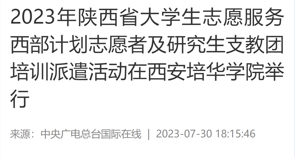 国际在线:2023年陕西省大学生志愿服务西部计划志愿者及研究生支教团培训派遣活动在西安培华学院举行