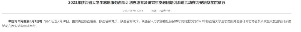 中国青年网:2023年陕西省大学生志愿服务西部计划志愿者及研究生支教团培训派遣活动在西安培华学院举行