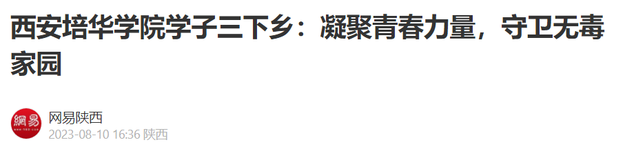 网易新闻:西安培华学院学子三下乡:凝聚青春力量,守卫无毒家园