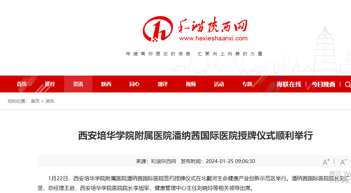 1月22日,西安培华学院附属医院潘纳茜国际医院签约授牌仪式在北戴河生命健康产业创新示范区隆重举行。潘纳茜国际医院院长刘广贤、总经理王岩,西安培华学院医院院长李旭军、健康管理中心主任刘晓玲等相关领导出席。