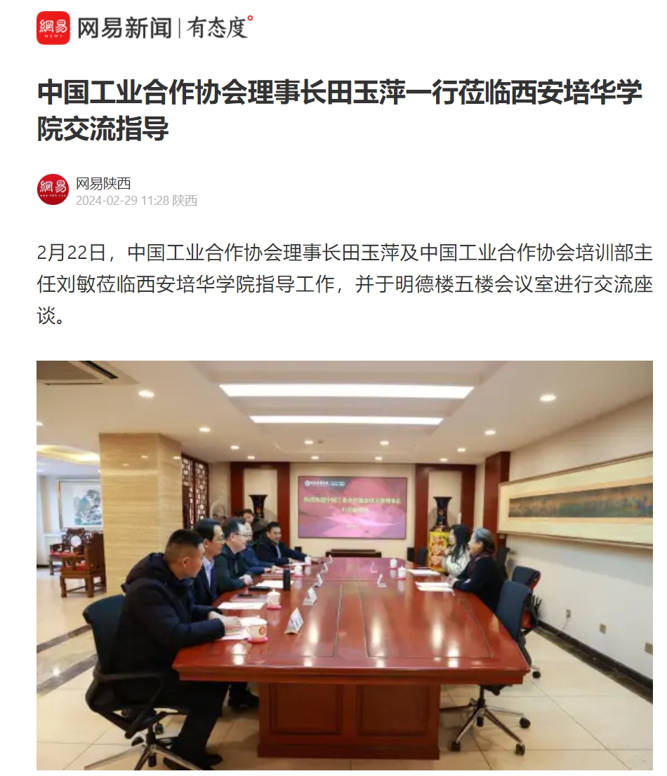 网易新闻:中国工业合作协会理事长田玉萍一行莅临西安培华学院交流指导