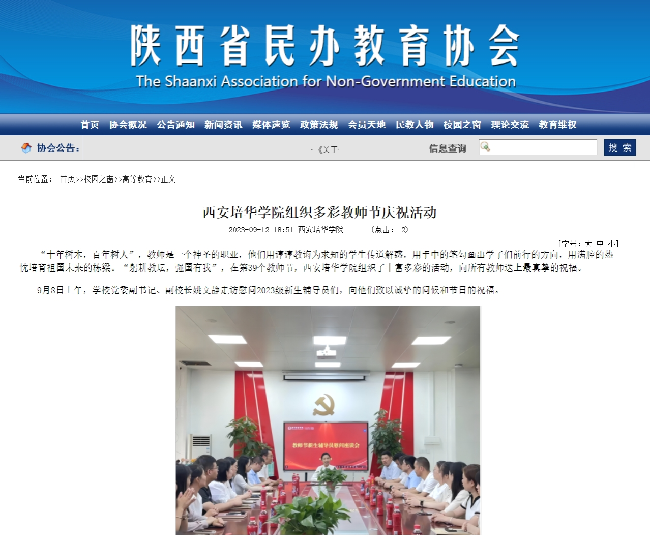 “十年树木,百年树人”,教师是一个神圣的职业,他们用谆谆教诲为求知的学生传道解惑,用手中的笔勾画出学子们前行的方向,用满腔的热忱培育祖国未来的栋梁。“躬耕教坛,强国有我”,在第39个教师节,西安培华学院组织了丰富多彩的活动,向所有教师送上最真挚的祝福。