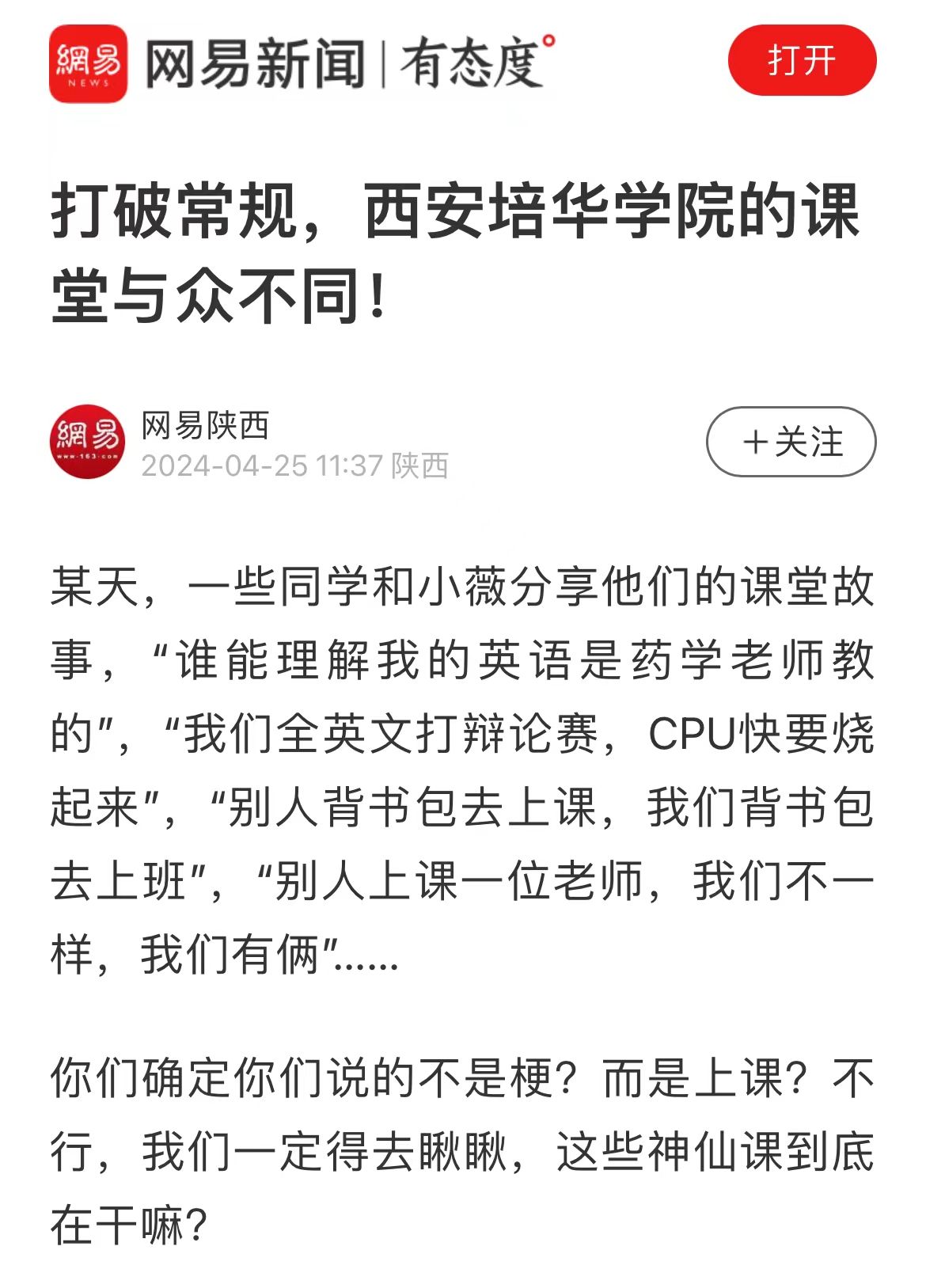 网易新闻:打破常规,西安培华学院的课堂与众不同!
