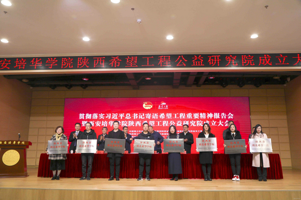 报告会上举行了全国高校首家希望工程公益研究院——西安培华学院陕西希望工程公益研究院揭牌活动,京东未来数字科技有限公司向陕西希望工程捐赠100万元公益创投基金,用于孵化、培育、资助希望工程青少年公益项目。