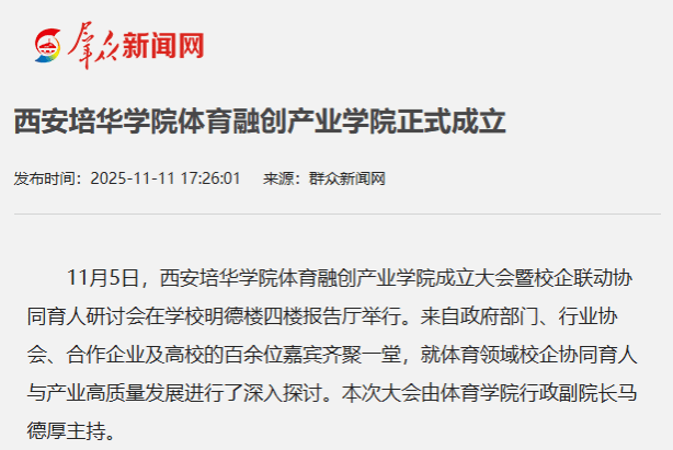 本次体育融创产业学院的成立,不仅是西安培华学院深化教育教学改革的重要探索,更搭建了高校、企业、行业协同发展的新平台。未来,学校将联合更多优质企业与行业协会,围绕课程共建、实习基地建设、行业导师聘任、技能认证培训等方面开展常态化合作,为体育产业培养更多“懂理论、强技能、能实战”的复合型人才,助力陕西乃至西北地区体育融创产业高质量发展。