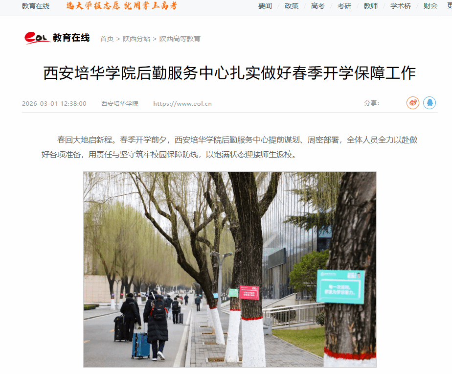中国教育在线:西安培华学院后勤服务中心扎实做好春季开学保障工作