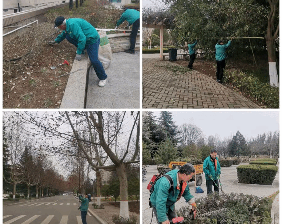绿化工作人员同步开展补种养护,清理枯萎苗木,补种适宜春季生长的花草,修剪浇灌现有绿植,防治病虫害,整理绿化景观,让校园生机盎然。