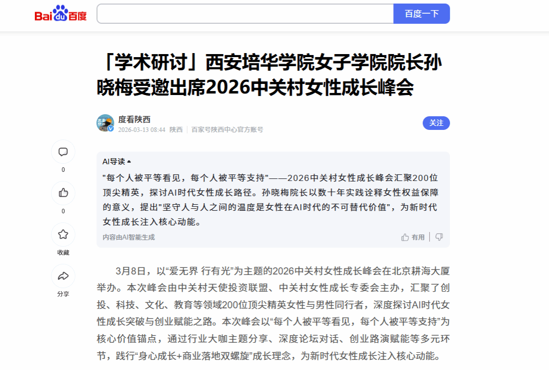 百度:「学术研讨」西安培华学院女子学院院长孙晓梅受邀出席2026中关村女性成长峰会