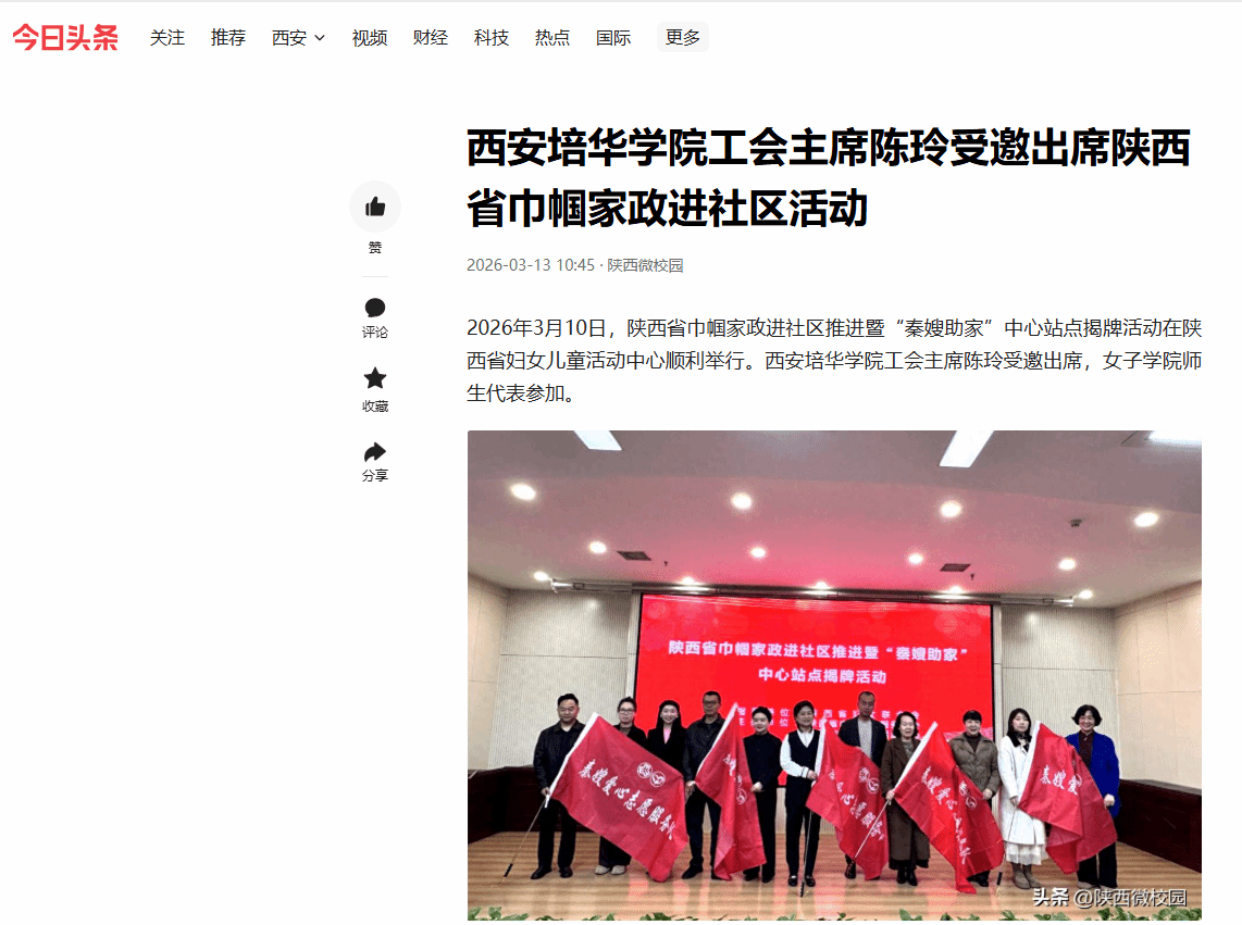 今日头条:西安培华学院工会主席陈玲受邀出席陕西省巾帼家政进社区活动