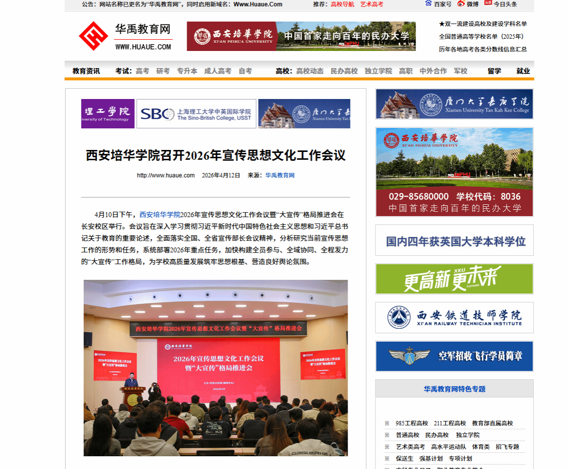 华禹教育网:西安培华学院召开2026年宣传思想文化工作会议